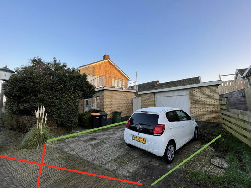 Bij het Trainee huis hebben wij twee parkeerplekken. Deze zijn aan de zijkant van het huis (zie afbeelding).