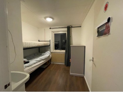 Voorbeeld van een slaapkamer. De meeste slaapkamers zijn voorzien van 2 bedden en worden gedeeld.